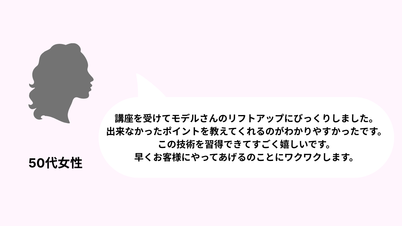 ヘッドスパが初めての方や、技術講習に不安を感じやすい方でも、基礎から段階的に学べるため、安心して受講いただける内容になっています。