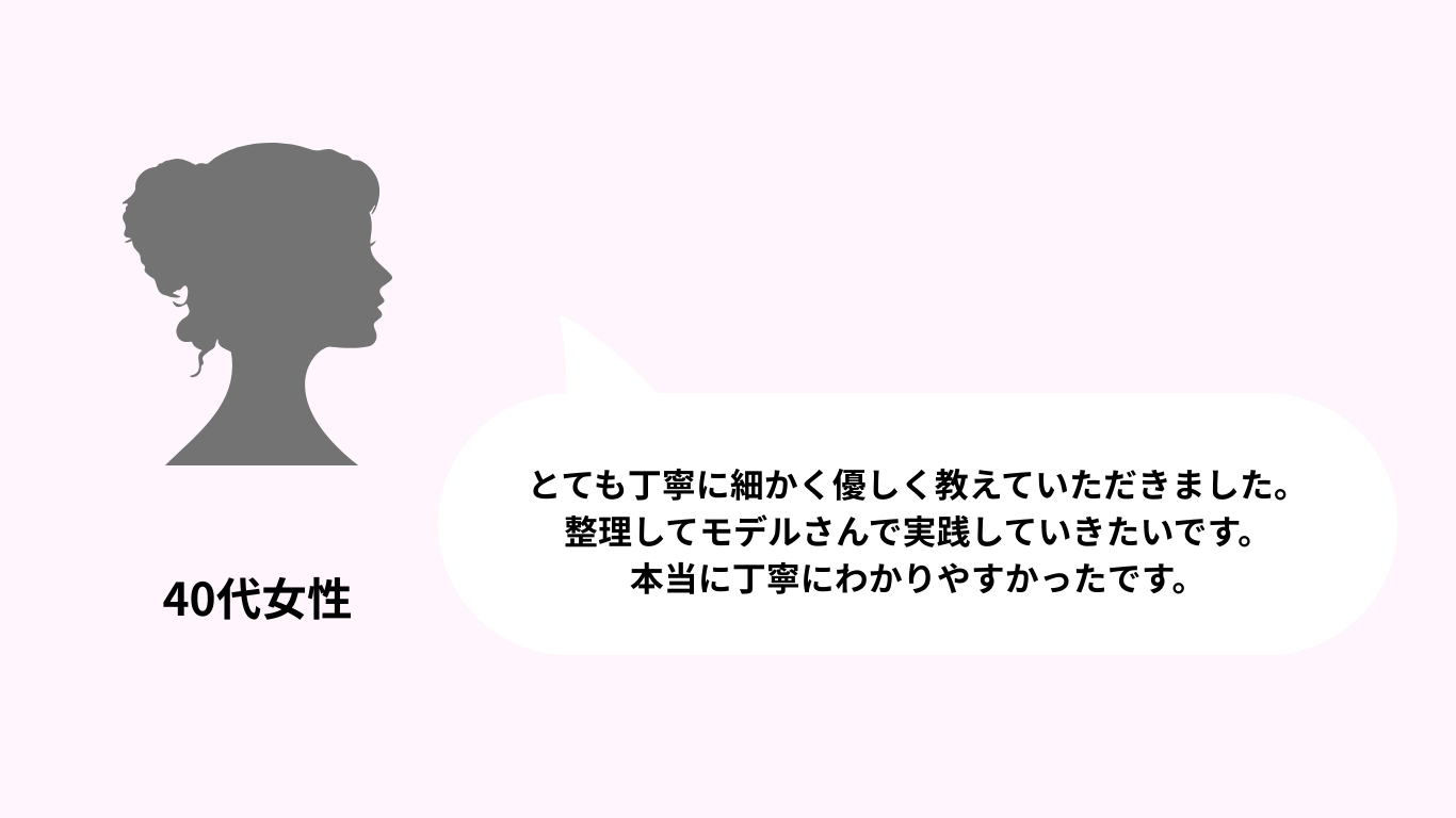 ※講座前に、60分コース(別途料金)を受けていただいています。事前に体験していただくことで、講座当日をスムーズに進めるためです。